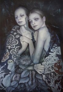 ダン・キンタナさんはアメリカ・ロサンゼルスを拠点として、優美で形象的な世界に浸った女神のような不気味な肖像を描いている。「油彩で描かれる折衷的なスタイルと細部へのこだわりは、ルネサンス期のネーデルラント(フランドル)の画家、ヒエロニムス・ボス(Hieronymus Bosch、1450ころ-1516)による異世界のイメージに通じるところがあり、これに現代的なモチーフや幾何学模様を融合させている」(ヴァニラ画廊)という。