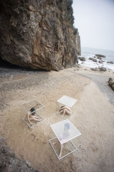 写真家の本間理恵子さんが「cube(キューブ)-繋がり、隔たり」と題して約20点を展示する。今回は「複雑な内面を持つ被写体と外側の世界との関わり方をも映し出そう」という試みで、「誰かと繋がりたい願望と、それを叶えられない隔たりによる葛藤。現実からの逃避が、この作品の中心的なテーマ」で、「ガラスの箱を一時避難所と見立て、傷ついた存在が身を寄せられる場所」として表現している。