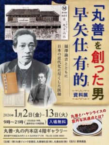【銀座新聞ニュース=2025年12月29日】大手書籍販売グループの丸善CHIホールディングス(新宿区市谷左内町31-2)傘下の丸善ジュンク堂書店(中央区日本橋2-3-10)が運営する丸善・丸の内本店(千代田区丸の内1-6-4、丸の内オアゾ、03-5288-8881)は2026年1月2日から13日まで4階ギャラリーで「『丸善』を創った男 早矢仕有的資料展ー福澤諭吉とともに日本の近代化に尽くした医師」を開く。