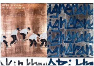 アーティストの新埜(あらの)康平さんはウォールアートやスケートボード、HIPHOPなどのストリートカルチャーや1990年代の映画の影響を受けながら、人物や情景をモチーフにした作品を、膠(にかわ)や和紙、胡粉などを使うことで、日本画特有の有機的なあたたかみを感じさせる作品を描いている。
