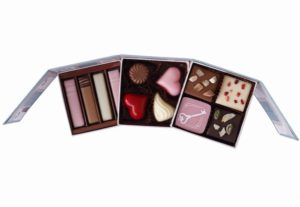 資生堂パーラーで販売している「バレンタインコレクション2026」の「キャレショコラ」(4個入)、「バトンショコラ」(4個入)、「ブシェショコラ」(4個入)を詰め合わせ「ショコラバリエ2026」(3996円)。