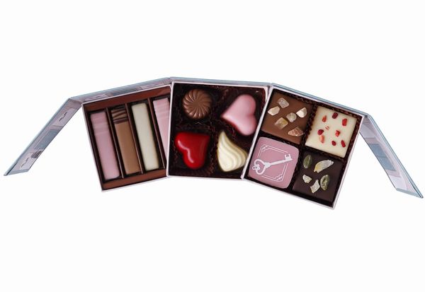 「スイート」はレモンパウダー入りのチョコをスイートチョコで包み込み、ドライレモン、ピスタチオをトッピング、「ストロベリー」は甘さが口いっぱいに広がる、華やかなピンク色のストロベリーチョコ、「ミルク」はマンゴーパウダー入りのチョコをミルクチョコで包み込み、ドライマンゴー、アーモンドをトッピング、「ホワイト」はストロベリーパウダー入りのチョコをホワイトチョコで包み込み、ドライストロベリー、ドライフランボワーズをトッピングした4種類。
