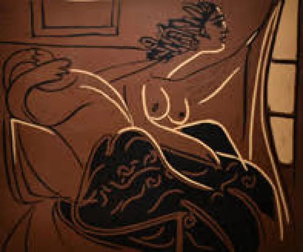 丸善・日本橋店で2月18日から24日まで開かれる「MASTERS of ART-ピカソ シャガール 小磯良平から現代人気作家まで」に出品されるピカソの「窓の外を見つめる女」(リノカット、1959年)。
