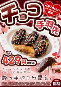 【銀座新聞ニュース=2026年2月7日】「鮨やまけん」や高級焼肉「銀座焼肉R」など120店舗を展開するS.H.N(渋谷区広尾1-1-39、恵比寿プライムスクエアタワー、03-6416-4173)の子会社、プロジェクトM(同上、03-6419-7734)は2月14日限定で「居酒屋革命酔っ手羽 新橋店」(港区新橋2-9-4、新橋乾盃ビル、03-6257-1141)など「居酒屋革命 酔っ手羽」15店舗で「チョコ手羽先」を販売する。