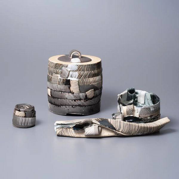 アーグネス・フスさんは帯状に伸ばした土を巻くなど独自の手法により、オブジェとして作っている。また、水差し、茶碗、茶入、香炉なども制作している。