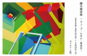 【銀座新聞ニュース=2026年3月9日】ギャルリー志門(中央区銀座6-13-7、新保ビル、03-3541-2511)は3月9日から14日まで藤木雅彦さんによる個展「キューブ・らせん・黄金比」を開いている。