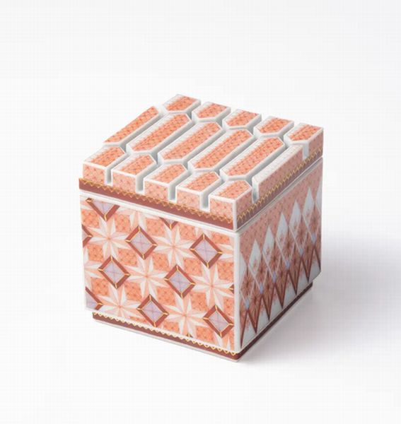 同じく出品される見附正康さんの「赤絵細描角香炉」。