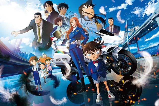 物語はコナンと毛利蘭(声優は山崎和佳奈さん)、鈴木園子(声優は松井菜桜子さん)、小五郎は、バイク好きの世良真純(日高のりこさん)とともに、バイクの祭典「神奈川モーターサイクルフェスティバル」が開催される横浜・みなとみらいに向かう途中、暴走する謎の黒いバイクに遭遇する。
