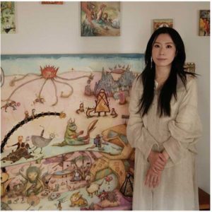 中原ちひろさんは1990年京都府生まれ、2012年に富山大学芸術文化学部を卒業、2014年に同大学大学院芸術文化学研究科を修了している。自ら創り続けてきたキャラクター図鑑から登場人物たちを選んで、言葉遊びや記憶の断片を重ねながら「生き物」たちが自由に戯れる物語空間を描いている。